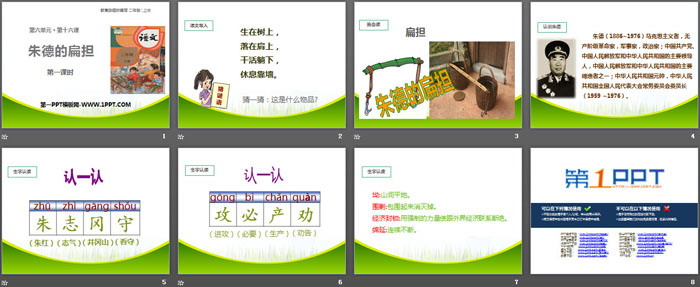 关键词:部编人教版二年级上册语文PPT课件免费下载,朱德的扁担PPT下载,.PPT格式;
