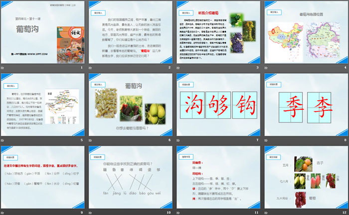 关键词:部编人教版二年级上册语文PPT课件免费下载,葡萄沟PPT下载,.PPT格式;