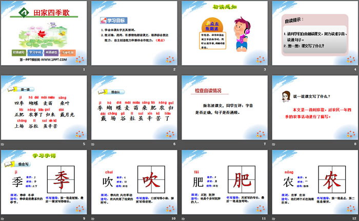田家四季歌PPT,第二部分内容:读一读