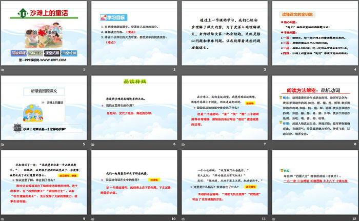 沙滩上的童话PPT,第三部分内容:阅读方法解密:品析动词