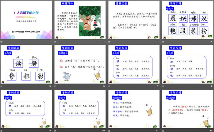 大青树下的小学PPT,第二部分内容:字词乐园