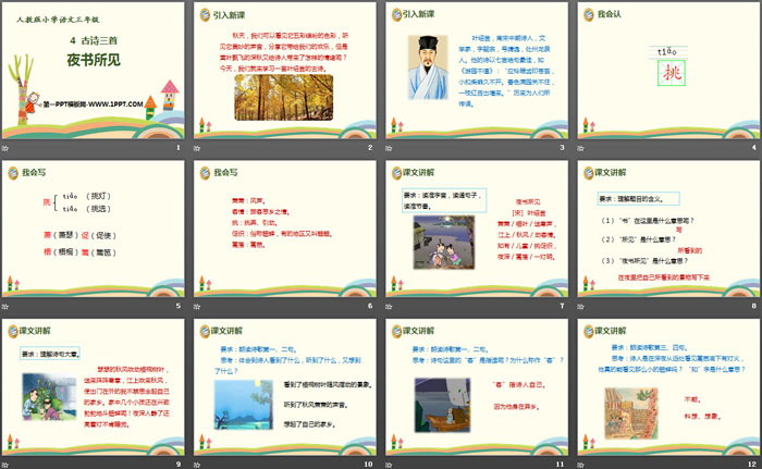 关键词:部编人教版三年级上册语文PPT课件免费下载,夜书所见PPT下载,.PPT格式;