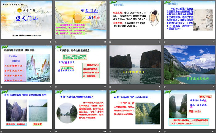 关键词:部编人教版三年级上册语文PPT课件免费下载,望天门山PPT下载,.PPT格式;