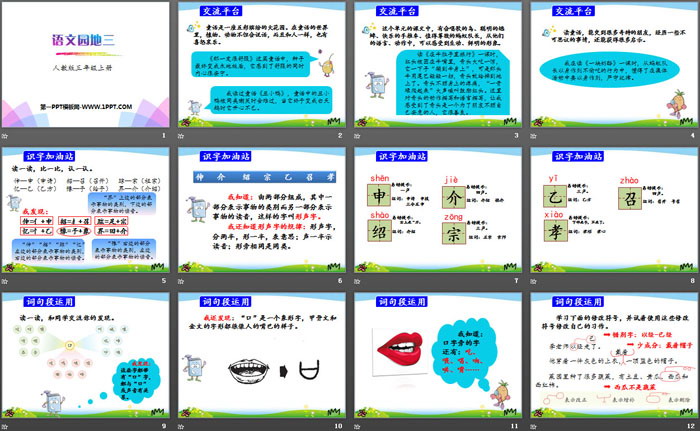 关键词:部编人教版三年级上册语文PPT课件免费下载,语文园地PPT下载,.PPT格式;