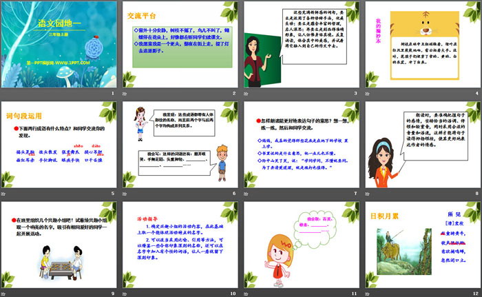 关键词:部编人教版三年级上册语文PPT课件免费下载,语文园地PPT下载,.PPT格式;