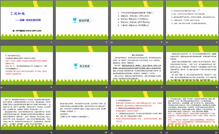 关键词:部编人教版七年级下册语文PPT课件免费下载,说和做记闻一多先生言行片段PPT下载,.PPT格式;