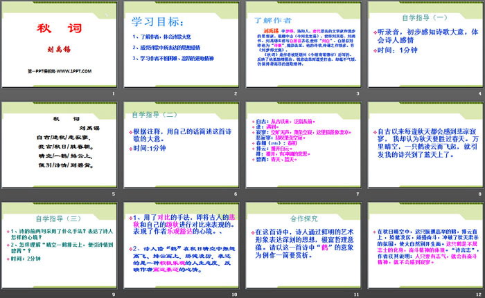 秋词PPT,第二部分内容:自学指导