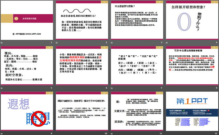 联想和想象都是由此到彼的心理过程。由一点出发,从多个角度想象。这个彼可以是具象的直观画面,也可以是抽象的人生哲理。