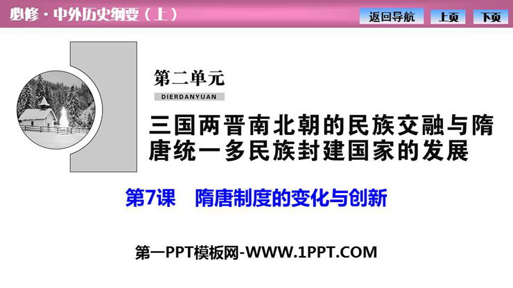 关键词:隋唐制度的变化与创新PPT课件免费下载,三国两晋南北朝的民族交融与隋唐统一多民族封建国家的发展PPT下载,.PPT格式;