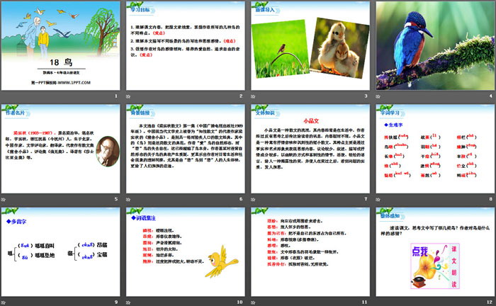 鸟PPT,第三部分内容:字词学习