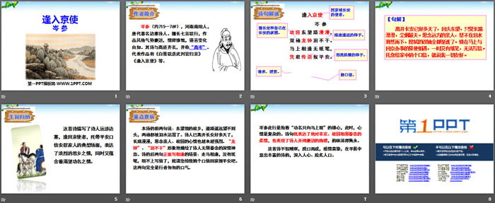 关键词:部编人教版七年级下册语文PPT课件免费下载,逢入京使PPT下载,.PPT格式;