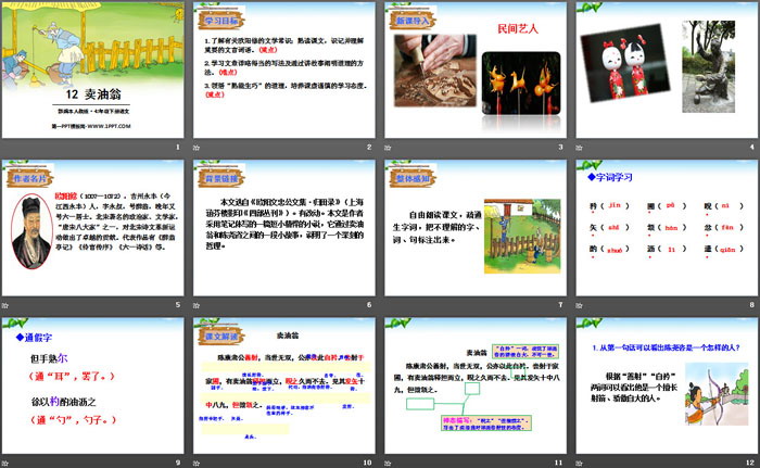 关键词:部编人教版七年级下册语文PPT课件免费下载,卖油翁PPT下载,.PPT格式;