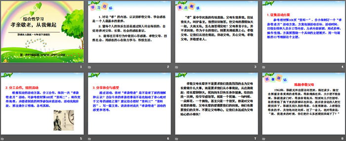 关键词:部编人教版七年级下册语文PPT课件免费下载,孝亲敬老从我做起PPT下载,.PPT格式;