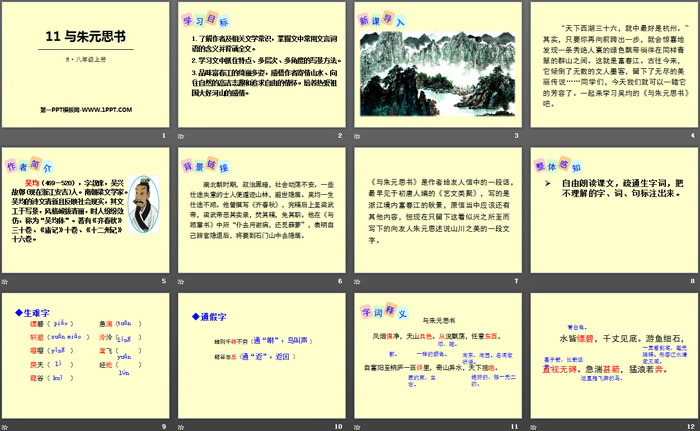 关键词:部编人教版八年级上册语文PPT课件免费下载,与朱元思书PPT下载,.PPT格式;