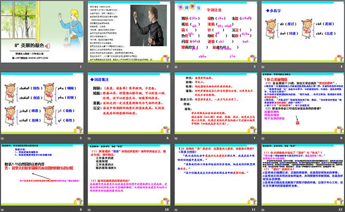 关键词:部编人教版八年级上册语文PPT课件免费下载,美丽的颜色PPT下载,.PPT格式;