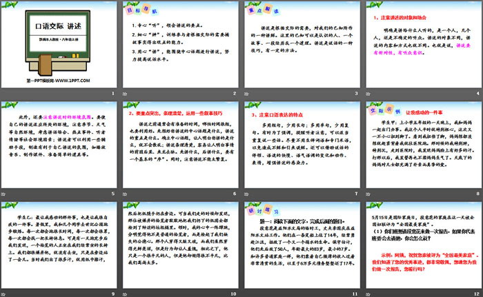 关键词:部编人教版八年级上册语文PPT课件免费下载,口语交际讲述PPT下载,.PPT格式;