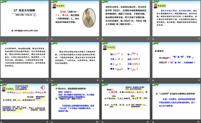 关键词:部编人教版八年级上册语文PPT课件免费下载,周亚夫军细柳PPT下载,.PPT格式;