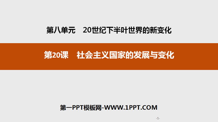 关键词:统编版中外历史纲要下册PPT课件免费下载,社会主义国家的发展与变化PPT下载,20世纪下半叶世界的新变化PPT下载,.PPT格式;