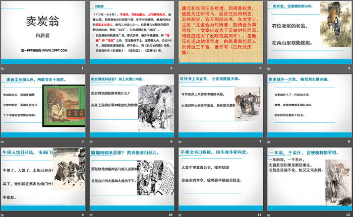 关键词:部编人教版八年级下册语文PPT课件免费下载,卖炭翁PPT下载,.PPT格式;
