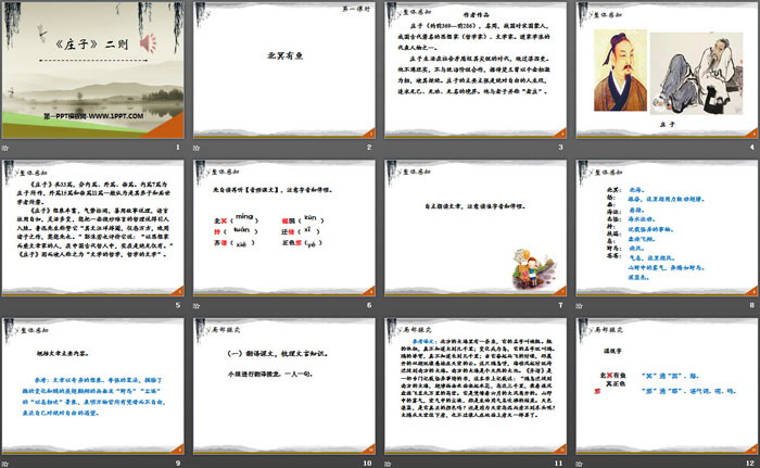关键词:部编人教版八年级下册语文PPT课件免费下载,北冥有鱼PPT下载,庄子与惠子游于濠梁之上PPT下载,.PPT格式;