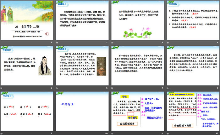 关键词:部编人教版八年级下册语文PPT课件免费下载,北冥有鱼PPT下载,庄子与惠子游于濠梁之上PPT下载,.PPT格式;