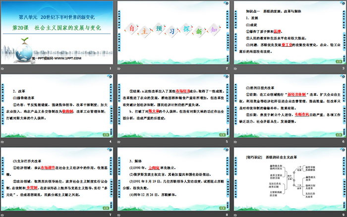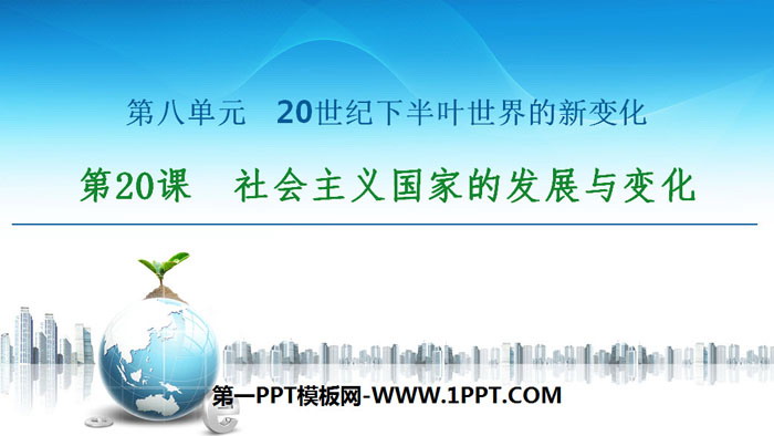 关键词:统编版中外历史纲要下册PPT课件免费下载,社会主义国家的发展与变化PPT下载,20世纪下半叶世界的新变化PPT下载,.PPT格式;