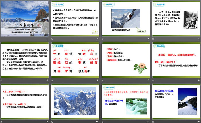 关键词:部编人教版八年级下册语文PPT课件免费下载,登勃朗峰PPT下载,.PPT格式;