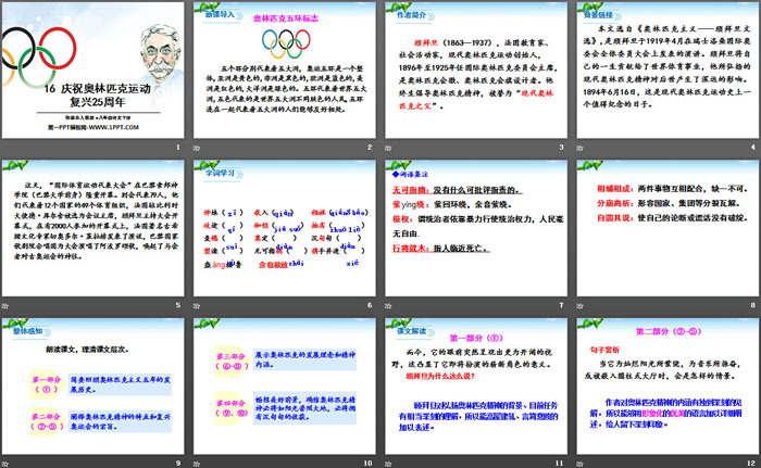 庆祝奥林匹克运动复兴25周年PPT,第二部分内容:字词学习