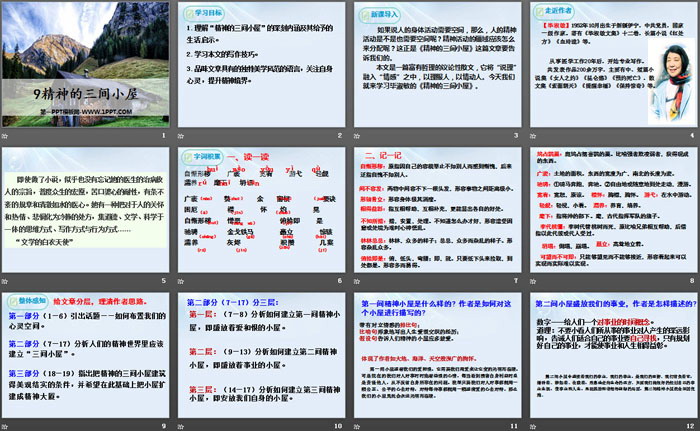 1.理解“精神的三间小屋”的深刻内涵及其给予的生活启示。
