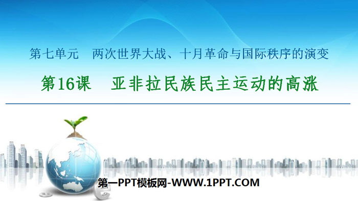 关键词:统编版中外历史纲要下册PPT课件免费下载,亚非拉民族民主运动的高涨PPT下载,两次世界大战十月革命与国际秩序的演变PPT下载,.PPT格式;