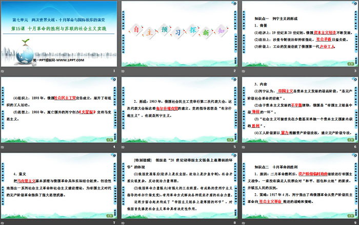 关键词:统编版中外历史纲要下册PPT课件免费下载,十月革命的胜利与苏联的社会主义实践PPT下载,两次世界大战十月革命与国际秩序的演变PPT下载,.PPT格式;