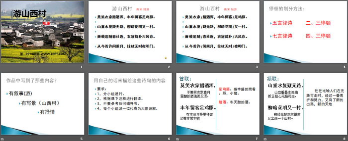 关键词:冀教版七年级上册语文PPT课件免费下载,游山西村PPT下载,.PPT格式;