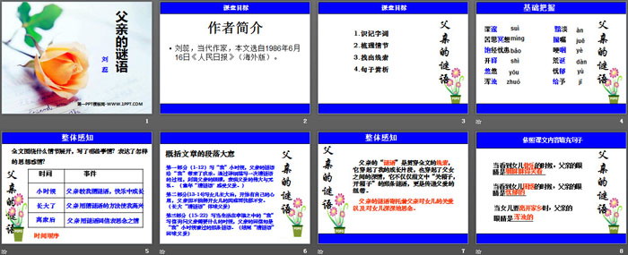 关键词:冀教版七年级上册语文PPT课件免费下载,父亲的谜语PPT下载,.PPT格式;