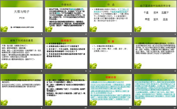 关键词:冀教版七年级上册语文PPT课件免费下载,大雁与鸭子PPT下载,.PPT格式;