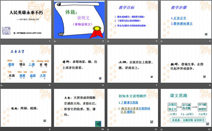人民英雄永垂不朽PPT,第三部分内容:初知本文说明顺序