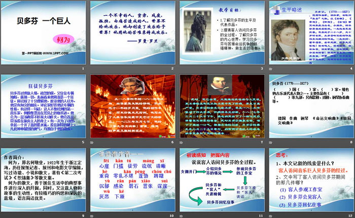 关键词:冀教版八年级上册语文PPT课件免费下载,贝多芬一个巨人PPT下载,.PPT格式;