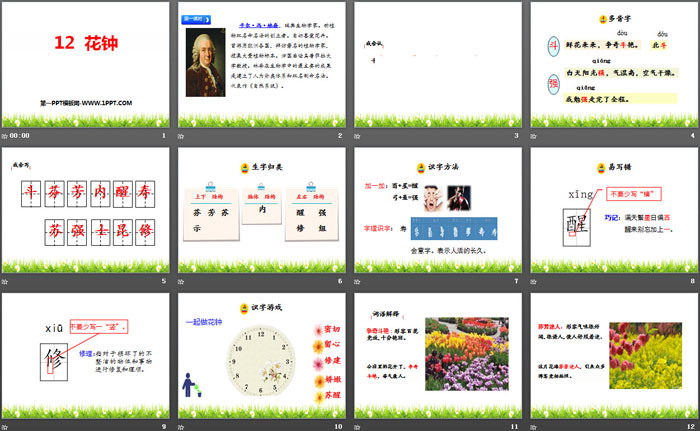关键词:部编人教版三年级下册语文PPT课件免费下载,花钟PPT下载,.PPT格式;