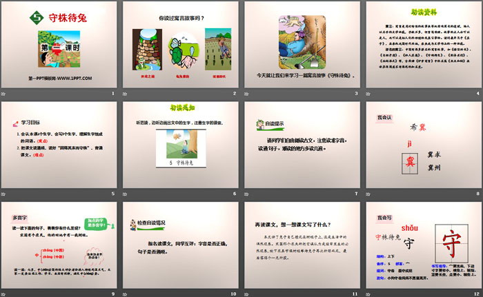 关键词:部编人教版三年级下册语文PPT课件免费下载,守株待兔PPT下载,.PPT格式;