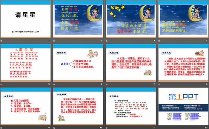 关键词:鄂教版一年级上册语文PPT课件免费下载,请星星PPT下载,.PPT格式;