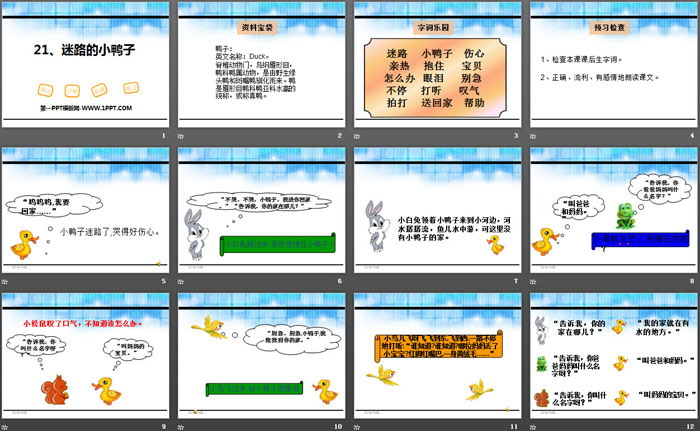 关键词:鄂教版一年级下册语文PPT课件免费下载,迷路的小鸭子PPT下载,.PPT格式;
