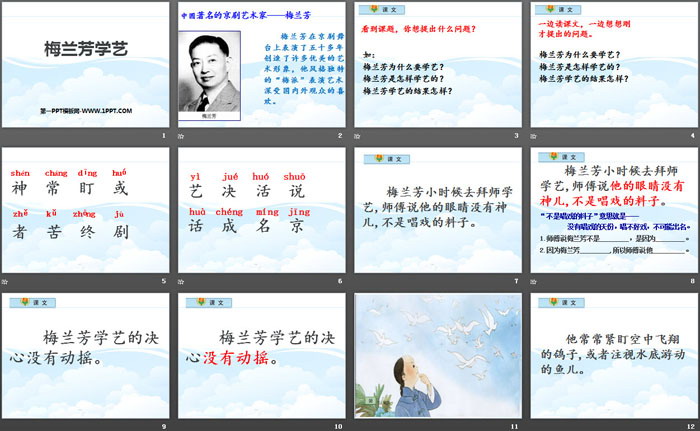 关键词:鄂教版一年级下册语文PPT课件免费下载,梅兰芳学艺PPT下载,.PPT格式;