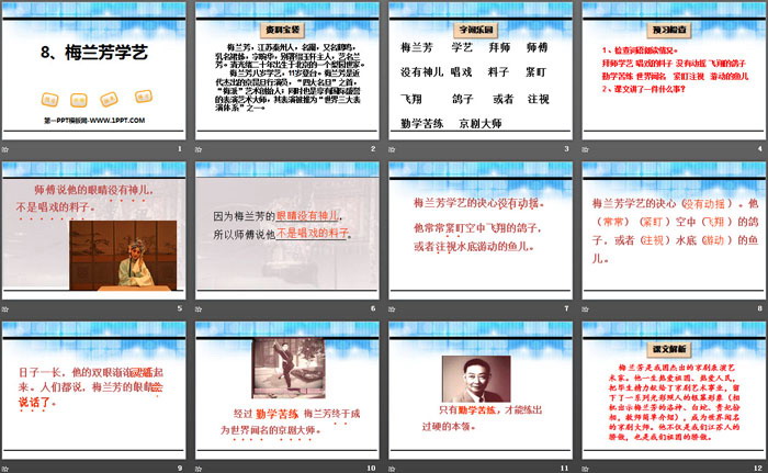 关键词:鄂教版一年级下册语文PPT课件免费下载,梅兰芳学艺PPT下载,.PPT格式;