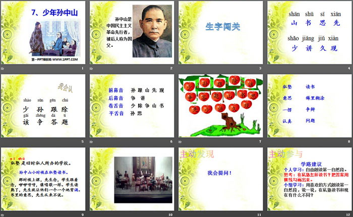 关键词:鄂教版一年级下册语文PPT课件免费下载,少年孙中山PPT下载,.PPT格式;