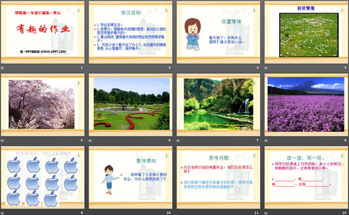 关键词:鄂教版一年级下册语文PPT课件免费下载,有趣的作业PPT下载,.PPT格式;