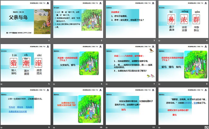 关键词:鄂教版二年级下册语文PPT课件免费下载,父亲和鸟PPT下载,.PPT格式;