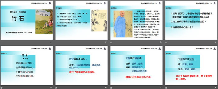 关键词:鄂教版二年级下册语文PPT课件免费下载,竹石PPT下载,.PPT格式;