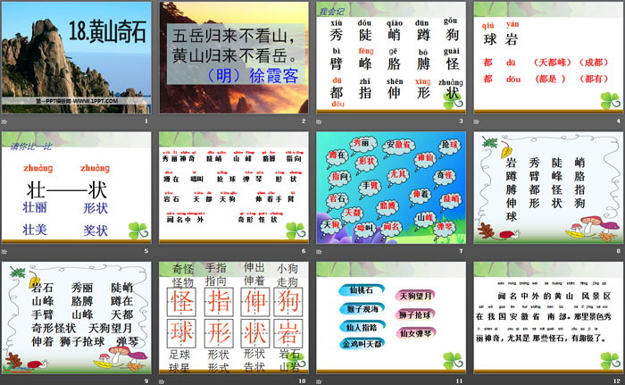 关键词:鄂教版二年级上册语文PPT课件免费下载,黄山奇石PPT下载,.PPT格式;