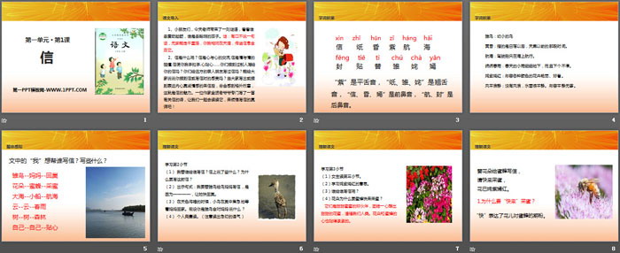 信PPT,第二部分内容:字词积累