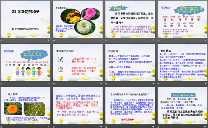 关键词:鄂教版三年级上册语文PPT课件免费下载,金盏花的种子PPT下载,.PPT格式;