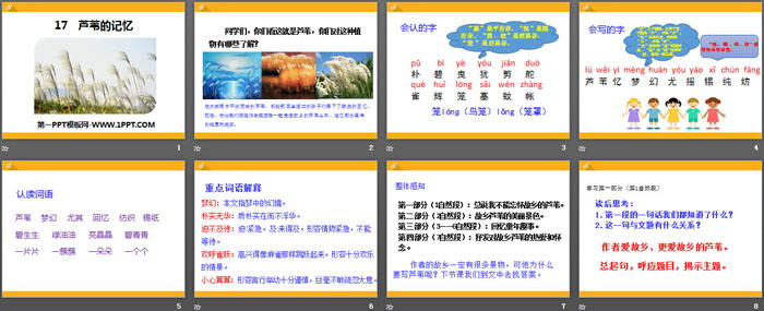 关键词:鄂教版三年级上册语文PPT课件免费下载,芦苇的记忆PPT下载,.PPT格式;